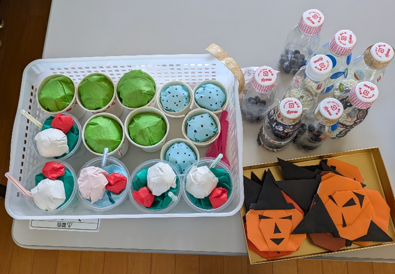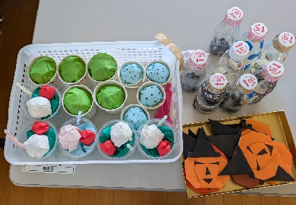 ※掲載画像枚数の制限により、先月のお店屋さんごっこの時の写真で載せられなかった写真を載せています。スタッフ力作の、可愛い商品たち〜☆