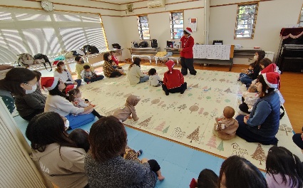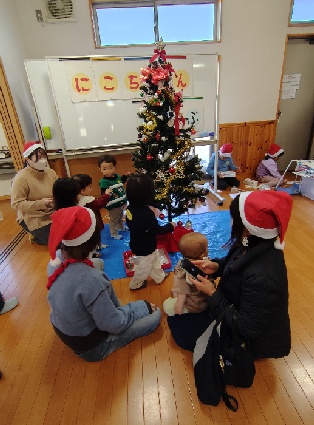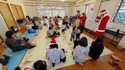 絵本を読んだり、お歌を歌っているとサンタさんが到着したようで、一人ひとりにプレゼントを渡してくれました☆ありがとう!サンタさん!